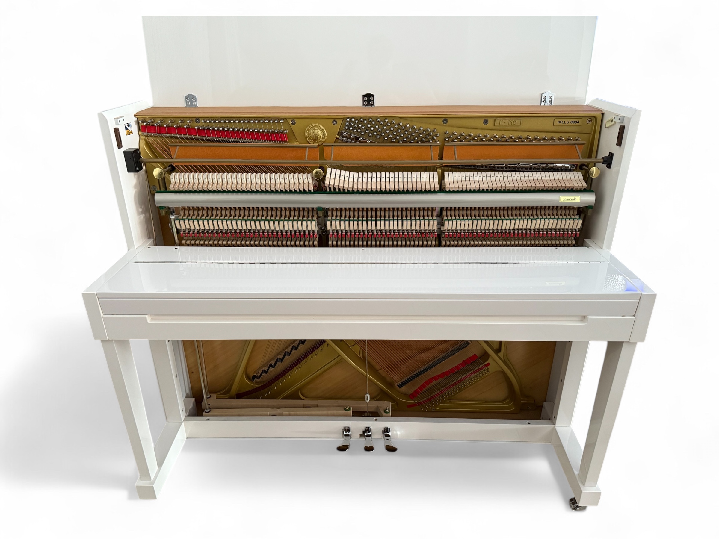 Verwendung hochwertiger Materialien wie Saiten von Röslau, kanadischem Ahorn für den Stimmstock, und deutscher Premiumwolle für die Hammerköpfe.